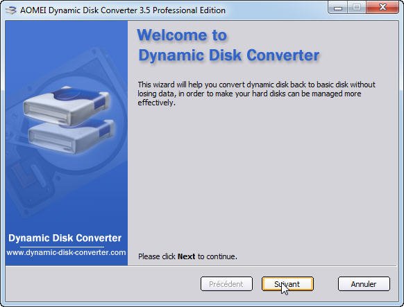 Cette opération effacera toutes les données sur le disque. Si vous souhaitez « convertir le disque dynamique en base » sans perte de données et aussi gérer bien le disque de base et dynamique, il est recommandé d'utiliser AOMEI Partition Assistant Professional.
