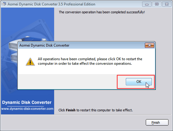 Étape 5 : Lorsque la conversion est terminée, cliquez sur "OK" pour redémarrer votre ordinateur.