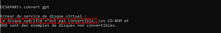 Comment résoudre l'erreur : le disque spécifié n'est pas convertible ?