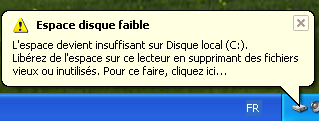 Pourquoi le pop-up à faible espace disque dans Windows 7 ?