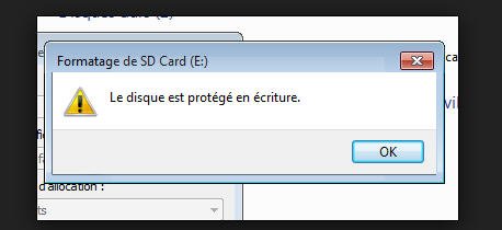 Si la carte SD est protégé en écriture, vous ne pouvez pas copier, supprimer, déplacer, écrire des fichiers ou formater SD.