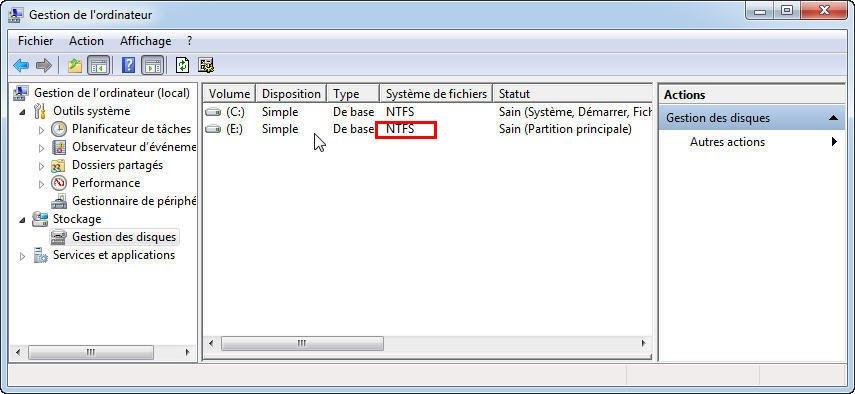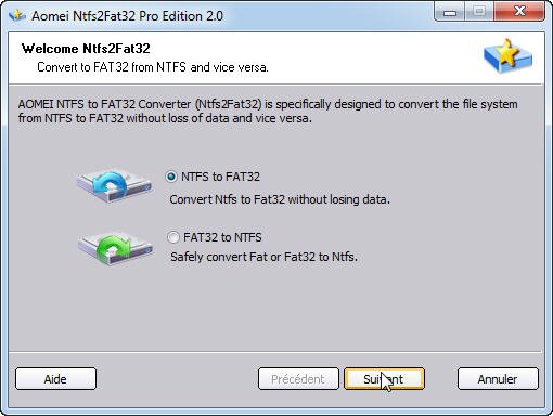 En comparaison avec deux formats de partition, NTFS est meilleur que FAT32. On peut convertir le système de fichiers de FAT32 en NTFS, mais dans la situation particulier, FAT32 est meilleur que NTFS.