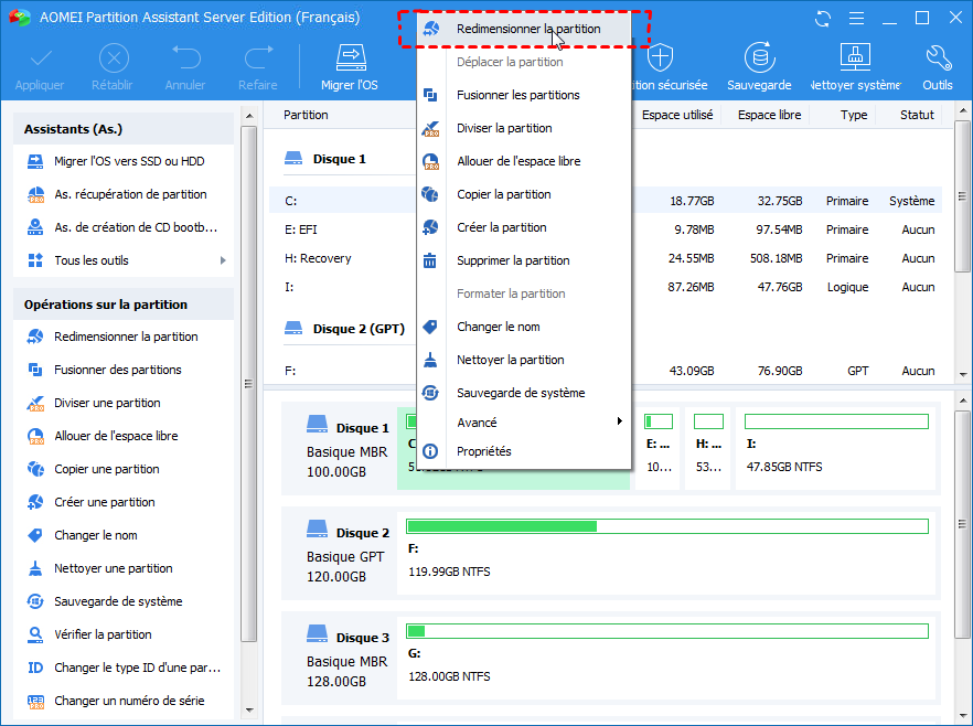 AOMEI Partition Assistant Server Edition fait partie de la famille AOMEI Partition Assistant, développée par AOMEI Technology et vise à vous aider à gérer les partitions de disque de manière plus simple et sans effort. En tant que gestionnaire de partition tout-en-un, il vous permet de créer/supprimer/formater une partition, cloner une partition, cloner un disque dur, convertir MBR et GPT sans perdre de données, etc. sous Windows Server 2022, 2019, 2016, 2012 (R2) et SBS 2003, 2008, 2011.