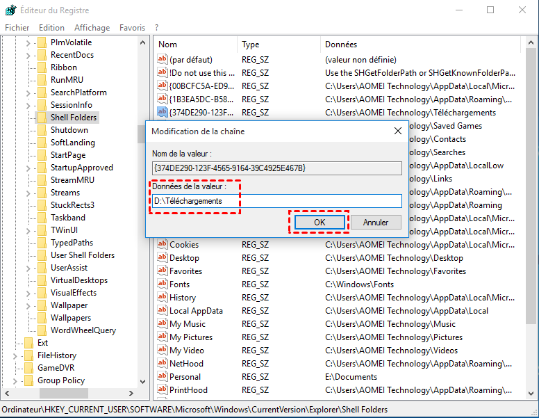 Méthode 2. Modifier le dossier Téléchargements via l'Éditeur du Registre
