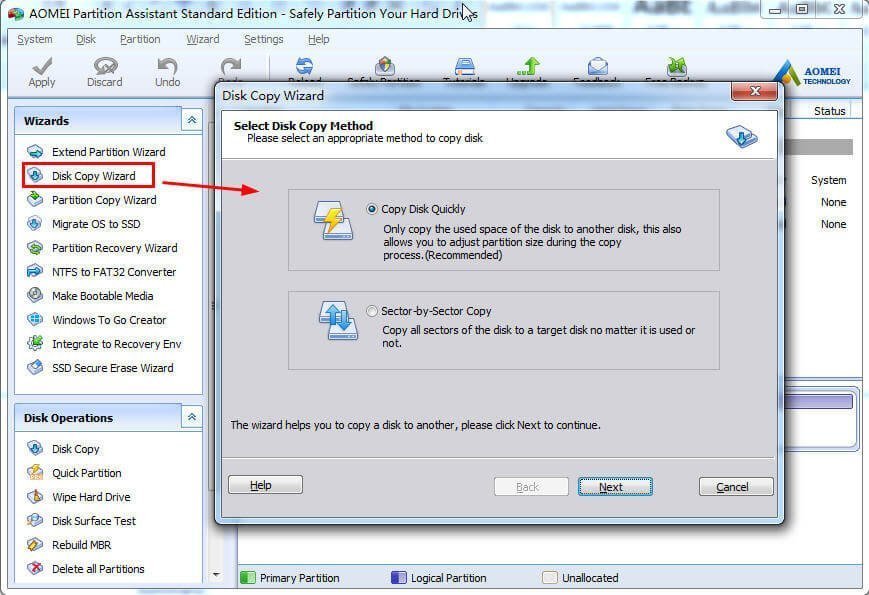 La première peut cloner tout le contenu d'un disque dur (disque dur système ou disque dur de données) vers un autre sans rien réinstaller. Il vous permet même de cloner un grand disque sur un disque plus petit.