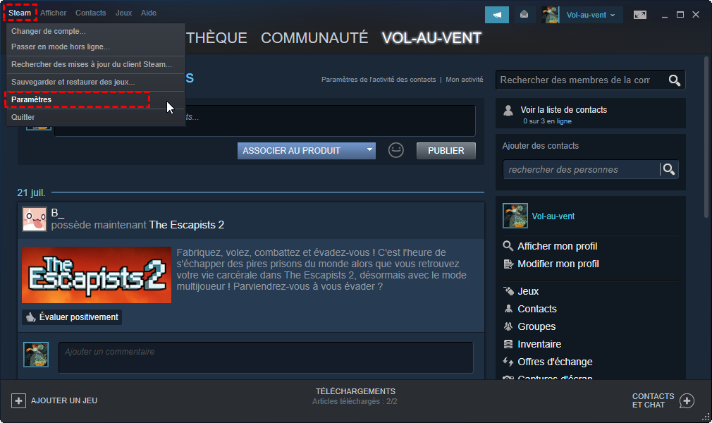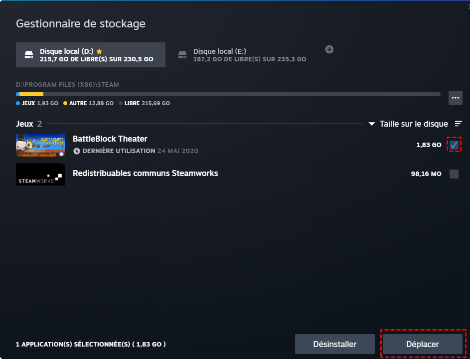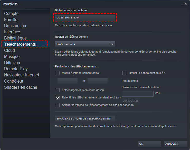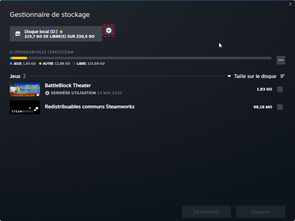 Méthode 1. Déplacer jeux steam sur un autre disque via les paramètres Steam