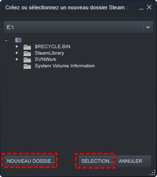 5. Une nouvelle fenêtre s'ouvre alors, cliquez sur «NOUVEAU DOSSIER... » pour créer un dossier vide, puis cliquez sur le bouton « Sélectionner... ».