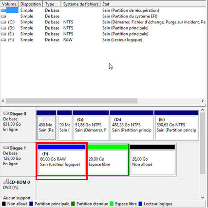 Quatre partitions sur un disque dur sont loin de satisfaire les besoins informatiques courants de l'utilisateur, par conséquent, on doit étendre les partitions et les partitons logiques. S'il y a déjà 3 partitions principales sur le disque dur MBR, mais sur HP ProLiant, lorsque vous tournez à la Gestion des disques pour créer une partition logique à partir de l'espace non alloué comme le quatrième, par défaut, il sera créé comme une partition étendue ou partition logique.