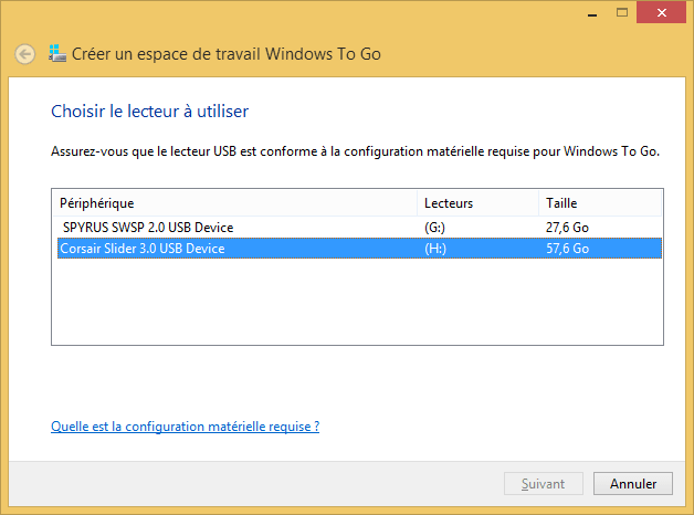 Windows nous permet de créer un espace de travail Windows To Go, mais il existe certaines exigences / limitations :