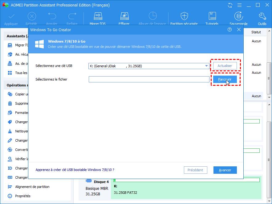 2. Installer Windows 10 sur clé USB via AOMEI Partition Assistant Professional