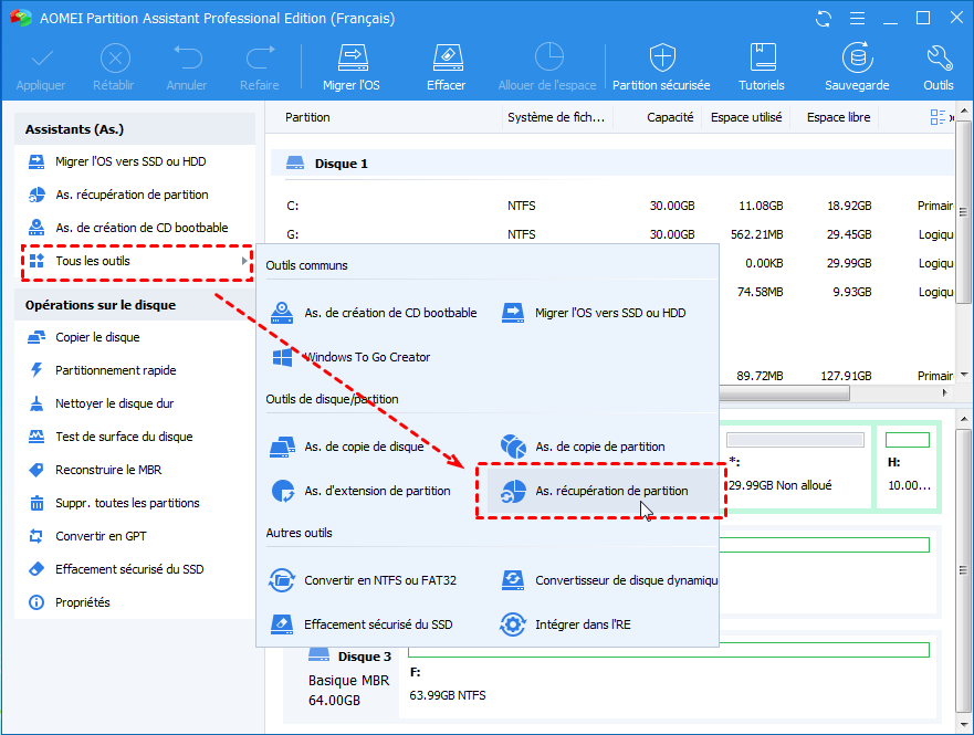 Il existe de nombreux logiciels sur le marché qui pourraient aider à récupérer le lecteur disparu dans Windows. Cependant, pour la plupart d'entre nous, il est plus important de trouver un outil puissant mais facile à utiliser. AOMEI Partition Assistant Professional est un tel outil qui peut nous aider à restaurer la partition manquante dans Windows 10.