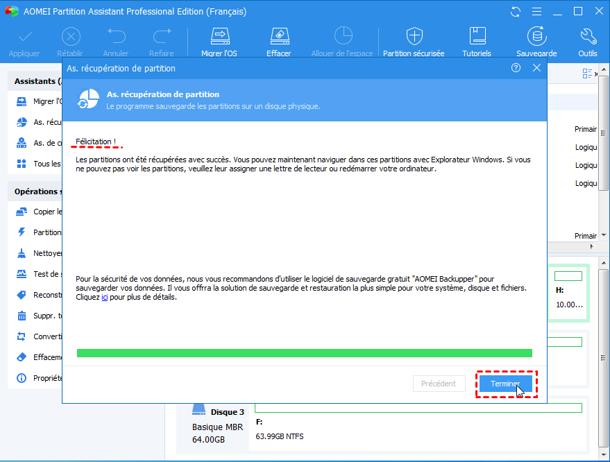 Si le lecteur D disparu ne peut pas être trouvé par ces trois manières, vous devrez peut-être le récupérer à l'aide d'un outil de récupération de partition professionnelle.