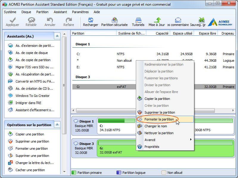 Formater le disque dur en exFAT avec AOMEI Partition Assistant :