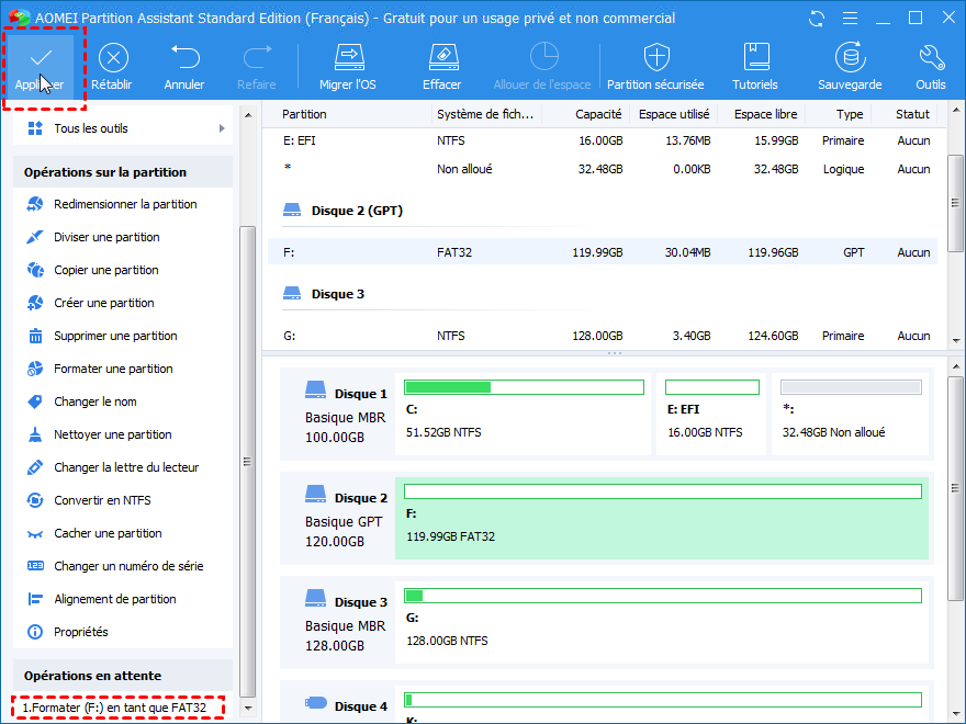 AOMEI Partition Assistant Standard est un excellent logiciel gratruit de partition de disque dur. Vous pouvez l'employer pour initialiser le disque, formater la partition, assigner la lettre de lecteur pour vous aider à résoudre ces problèmes comme le disque dur manquant dans Windows 10. Maintenant, nous allons vous présenter comment l'utiliser.