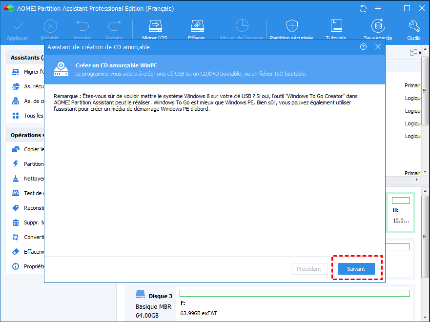En outre, une autre méthode peut vous aider. AOMEI Partition Assistant Professional est un logiciel complet pour vous permettre de gérer les partitions de disque dur et de dépanner l’erreur de gestionnaire de démarrage Windows sous WinPE. Il est capable de reconstruire le MBR pour réparer le problème que le gestionnaire de démarrage Windows a échoué dans Windows 10, voici les étapes à suivre :