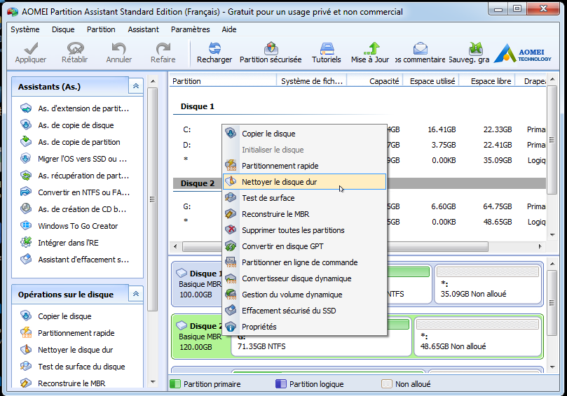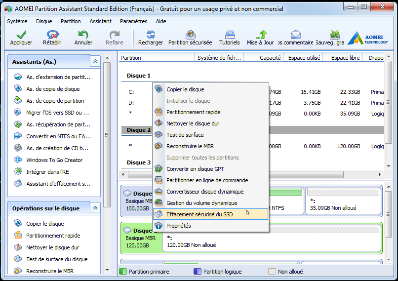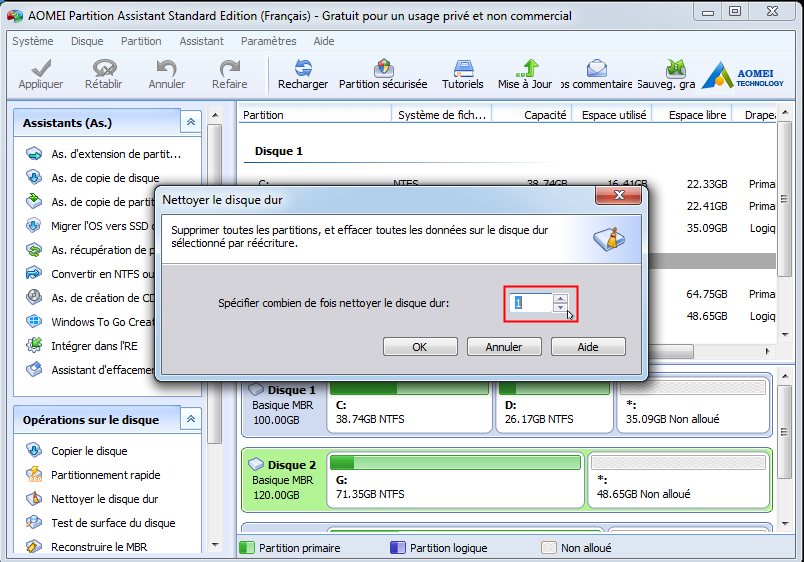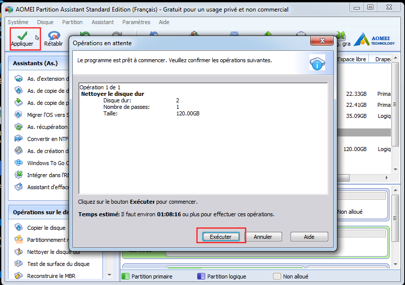 Effacer complètement un disque dur externe via AOMEI Partition Assistant Professional