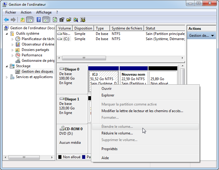 1. Étendre la partition système dans Windows 10 via la Gestion des disques