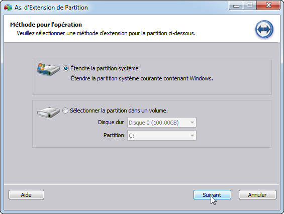 Étape 2 : Dans la fenêtre pop-up, il y a deux choix. Pour étendre la partition système, cliquez sur le premier, puis cliquez sur Suivant.