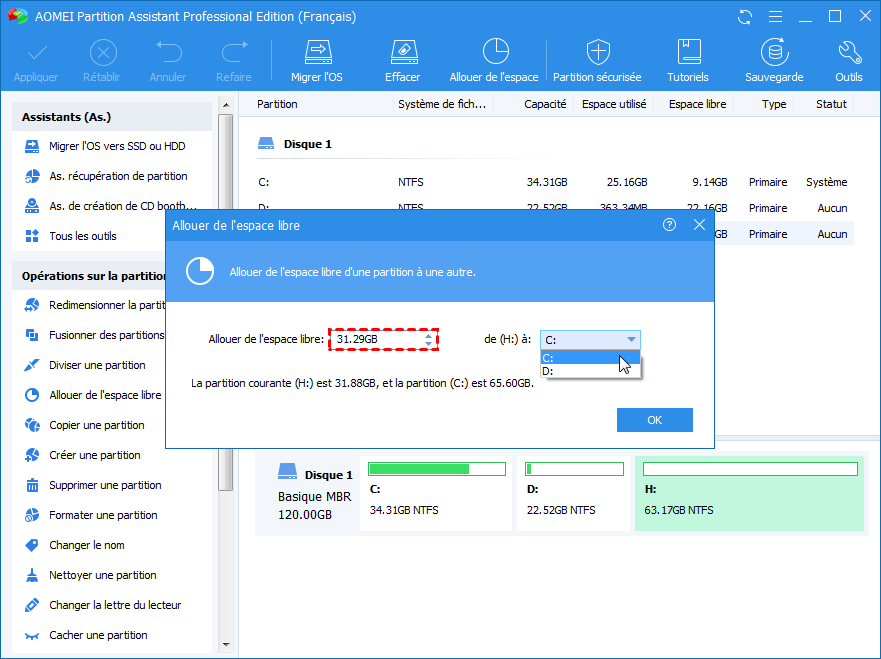 | Allouer de l'espace libre d'une partition à une autre | ![]() |