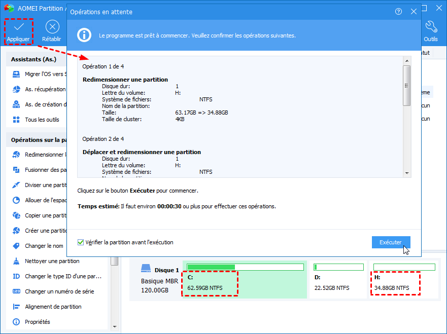 Étape 3. Maintenant, vous pouvez voir que de l'espace libre a été alloué à la partition C à partir de la partition D. Cliquez sur Appliquer pour étendre la partition C.