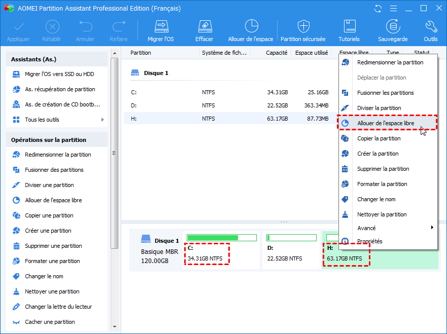 En effet, pendant l'utilisation de Gestion des disques Windows 10, vous pourriez encore rencontrer des autres messages d'erreurs ou limitations. Si vous souhaitez faire des opérations sur le disque dur facilement et avec succès, il vaut mieux essayer un gestionnaire de partition de disque tiers - AOMEI Partition Assistant Professional qui possède également beaucoup de fonctions pratiques.