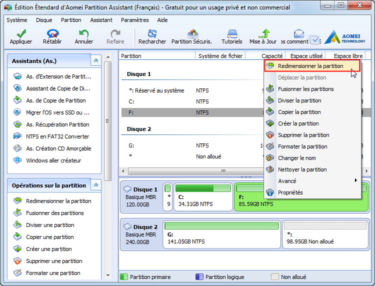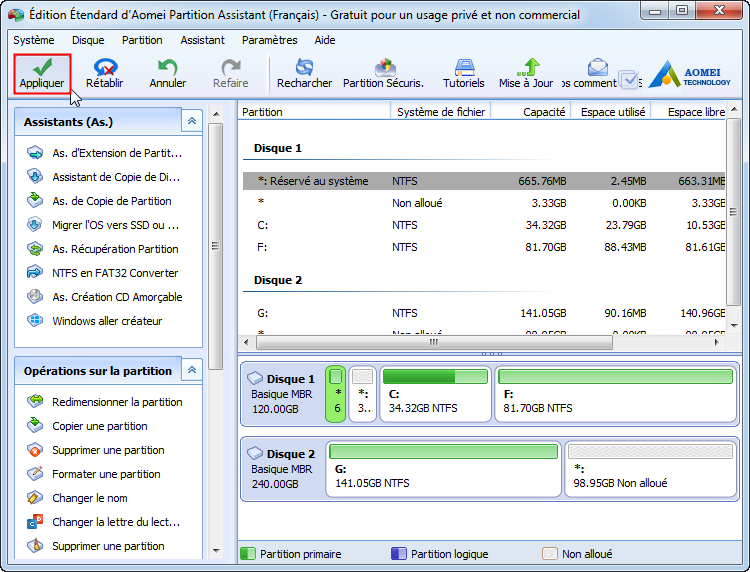 Pour résoudre l'erreur "Impossible de mettre à jour la partition réservée du système", vous pouvez utiliser un logiciel tiers de partition gratuit, comme AOMEI Partition Assistant Standard, pour augmenter la taille de la partition réservée au système sans perte de données.