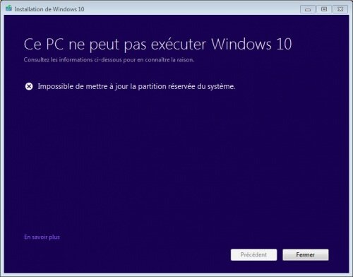 Problème à propos de « Impossible de mettre à jour la partition réservée du système »