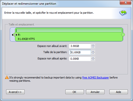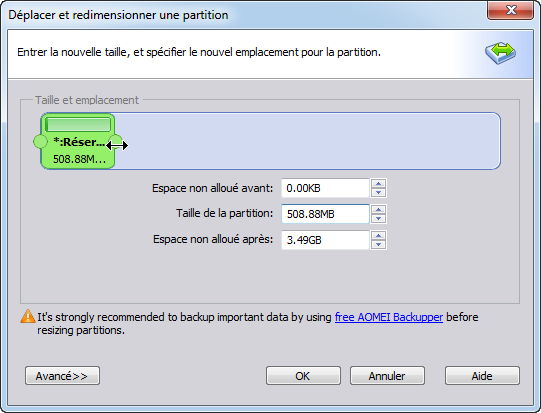 ✍ La fonction "Redimensionner/déplacer la partition" peut aussi être utilisée pour redimensionner la partition BitLocker.