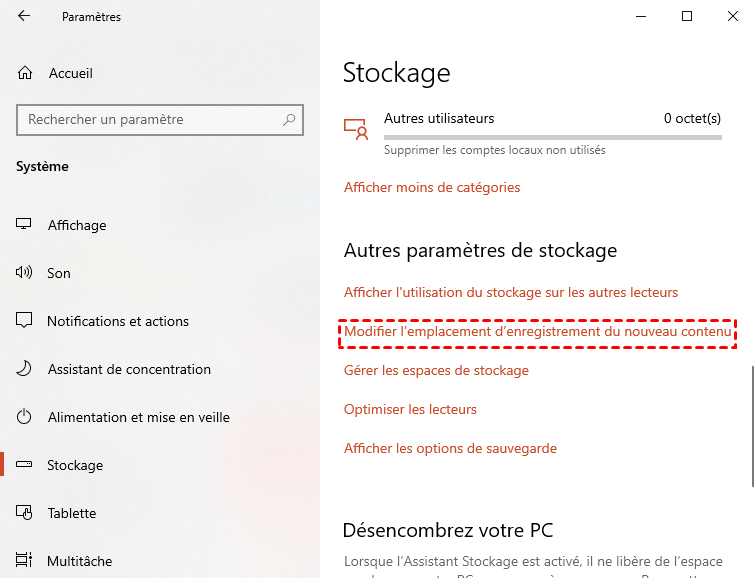 Étape 2. Défilez vers le bas et cliquez sur Modifier l’emplacement d’enregistrement du nouveau contenu.