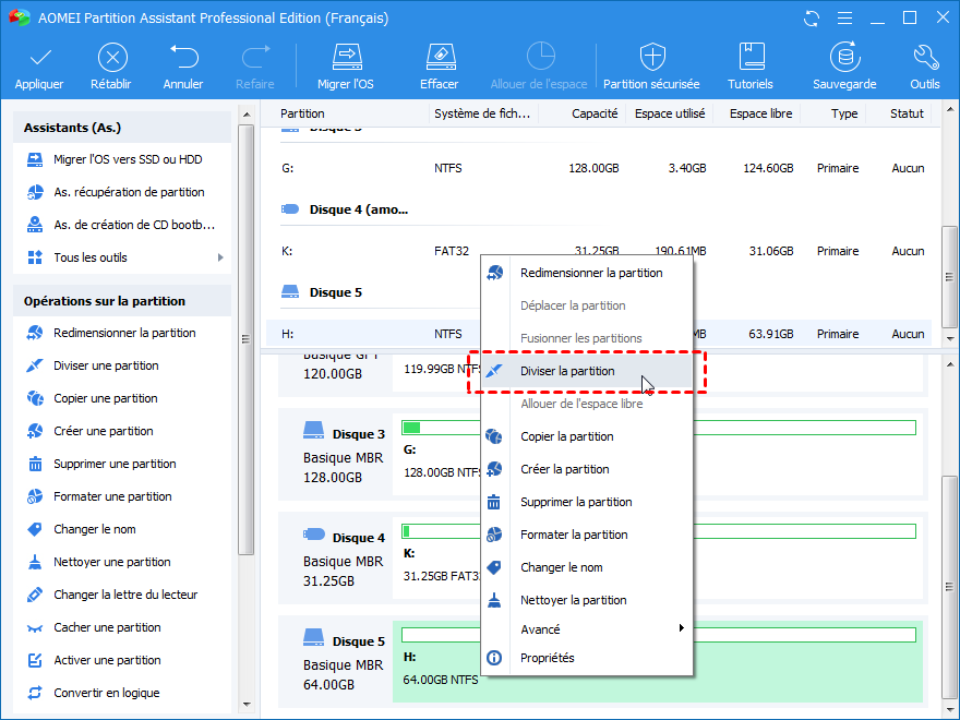 Partitionner une clé USB dans Windows 10 avec AOMEI Partition Assistant