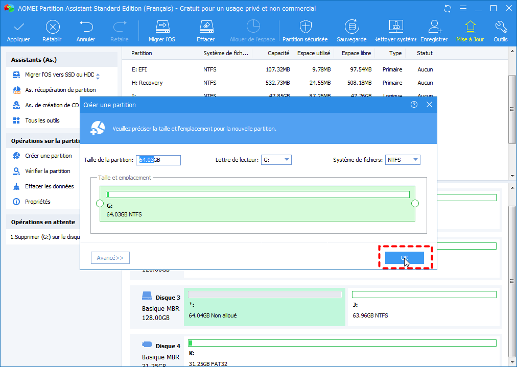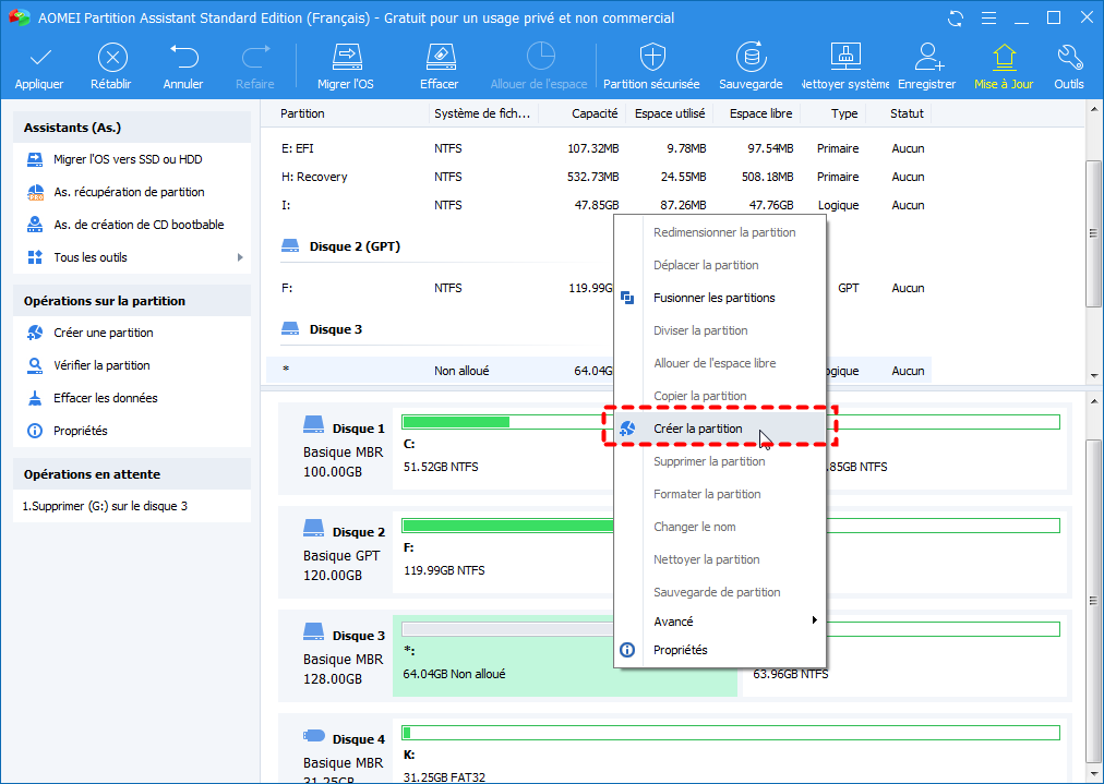 Si vous avez besoin de la façon plus simple et plus facile à comprendre, vous pouvez essayer AOMEI Partition Assistant.