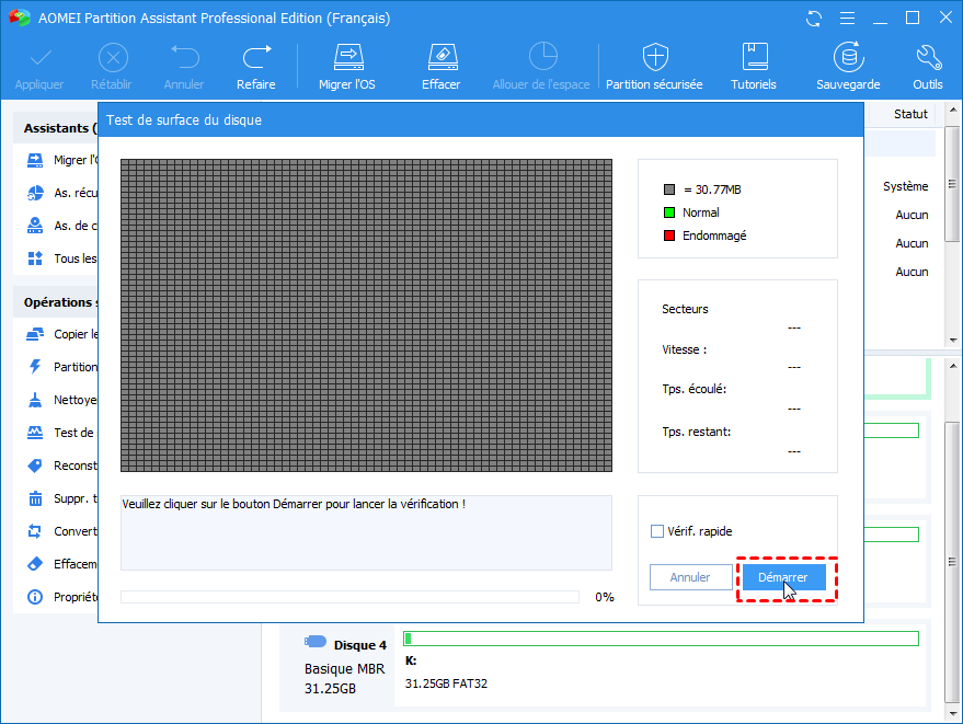 Le problème redémarrage en boucle Windows 10, peut être provoqué par les erreurs du disque dur. Donc, vous pouvez vérifier le disque dur pour les erreurs avec AOMEI Partition Assistant.