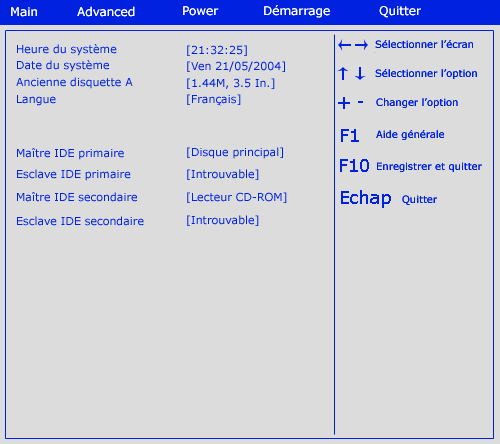 ● Vérifiez le maître IDE principal, l'esclave IDE primaire, le maître IDE secondaire et le maître IDE secondaire pour voir si le disque dur est détecté.