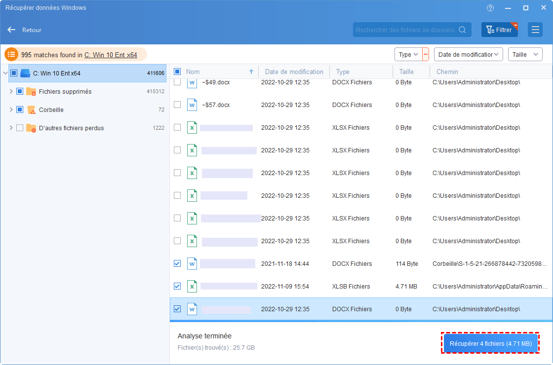 Étape 3. Une fois l'analyse terminée, tous les fichiers supprimés seront affichés. Si vous avez trouvé les fichiers qui n'affichent pas, veuillez les cocher et cliquer sur Récupérer X fichiers. (X est le nombre de fichiers sélectionnés).