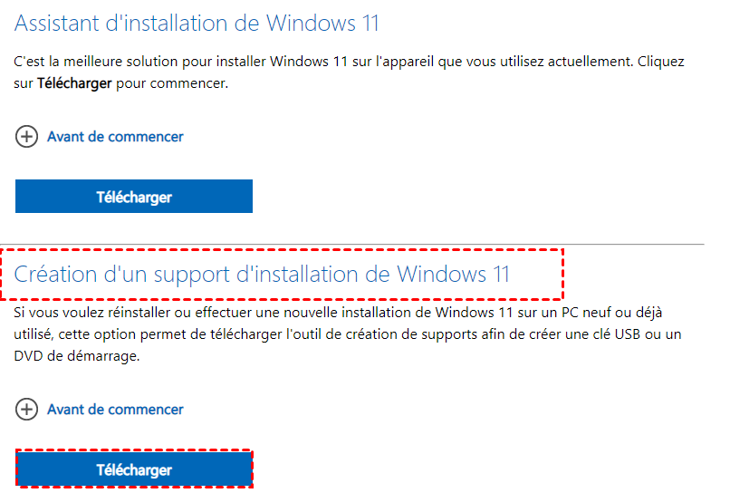 Dans la première partie, il est nécessaire de créer un support d'installation de Windows 11.