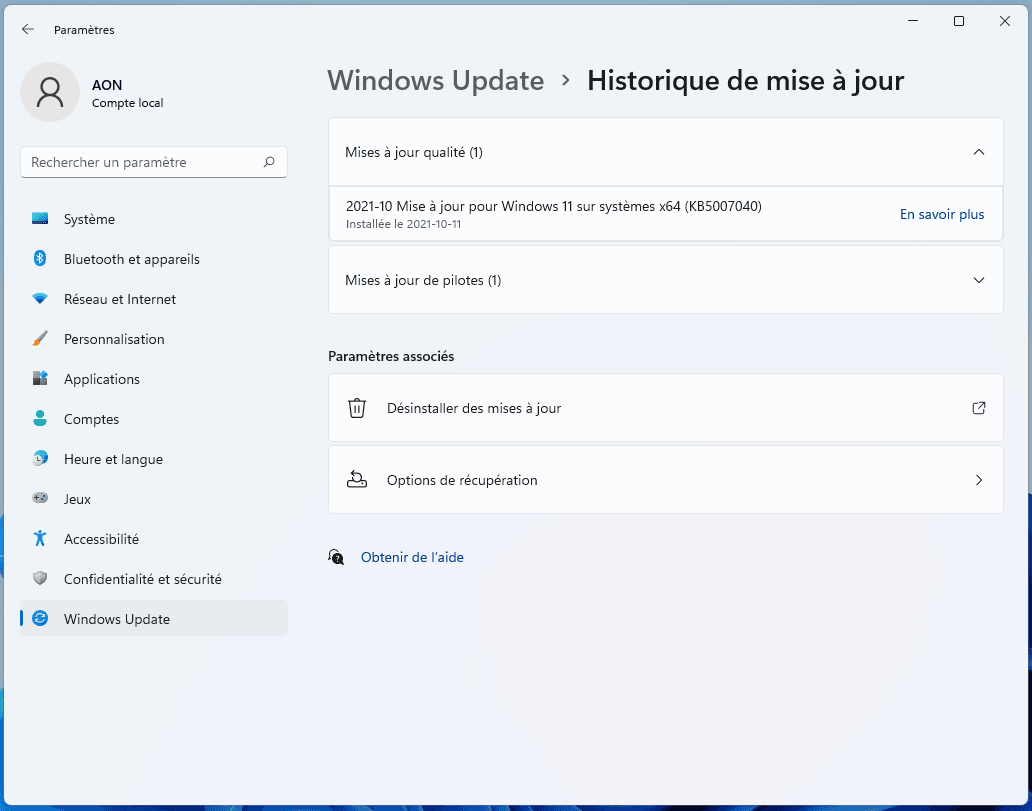 Étape 2. Cliquez sur Windows Update > Historique des mises à jour > Désinstaller les mises à jour.