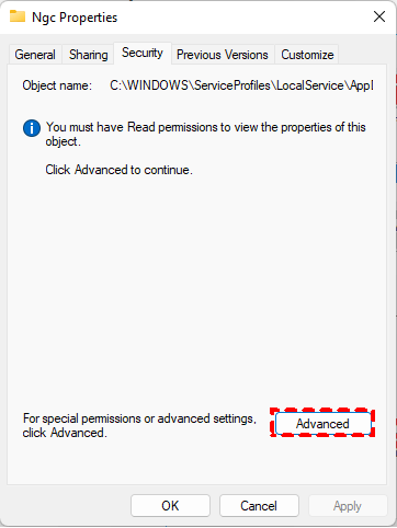 Étape 2. Trouvez le dossier Ngc et essayez de le supprimer. Faites un clic droit sur le répertoire et sélectionnez « Propriétés » dans le menu.