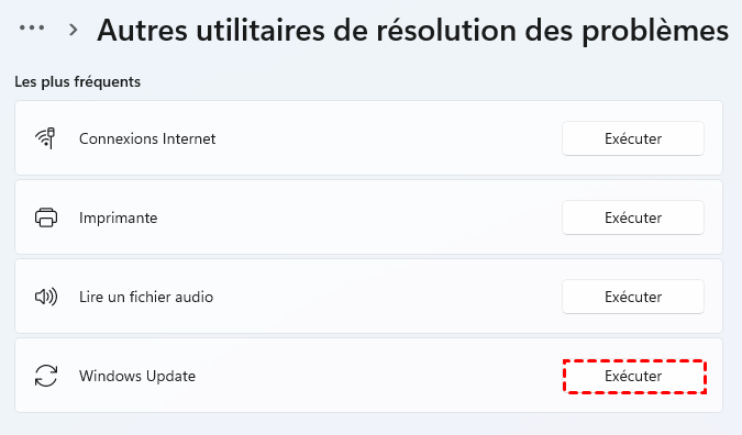 Étape 2. Cliquez sur Exécuter à côté de Windows Update dans la nouvelle interface.