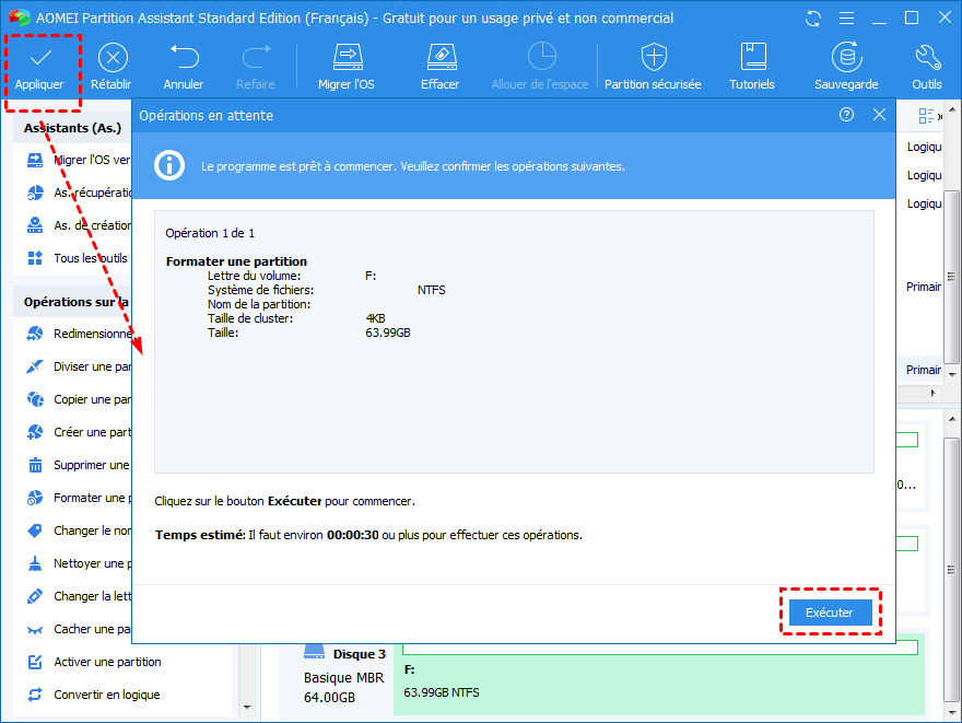 3. Revenez à l'interface principale. Confirmez votre opération et cliquez sur Appliquer > Exécuter pour soumettre.