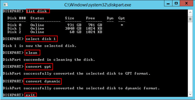 Résolu : Option Convertir en disque dynamique est grisée sous Windows Server 2012