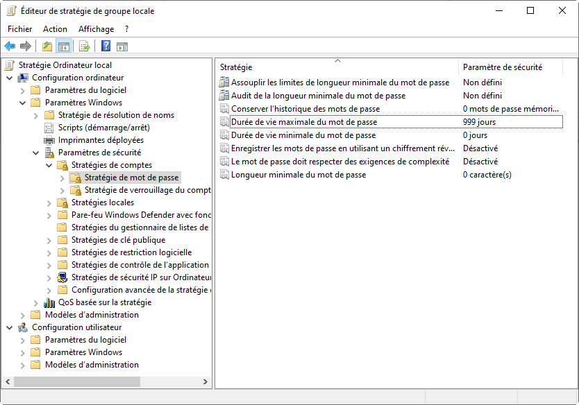Vous pouvez aussi désactiver l'expiration du mot de passe avec cet outil.