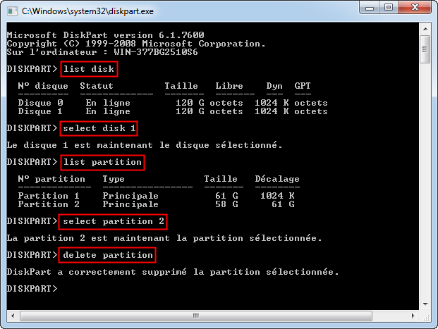 Supprimer le volume avec DiskPart sur Windows Serveur 2016/2019/2022
