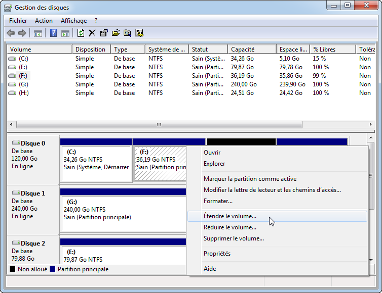 2. Étendre une partition avec Gestion des disques
