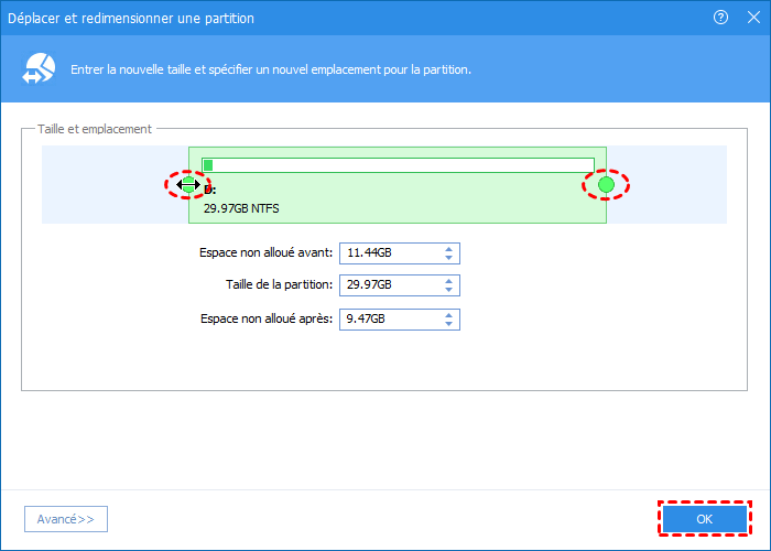 Redimensionner/déplacer la partition