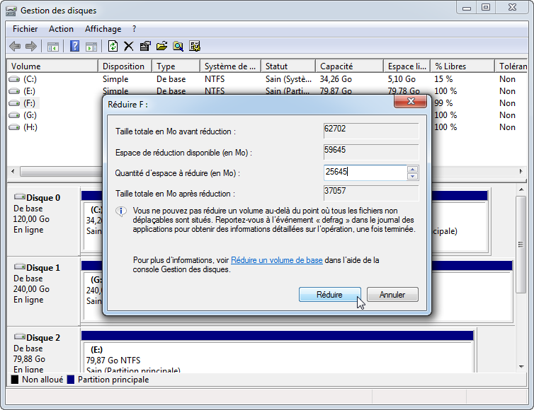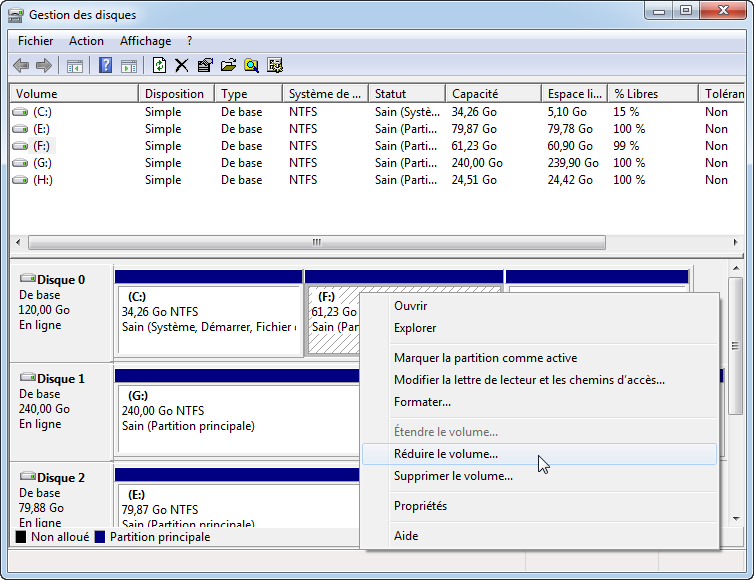 1. Réduire une partition avec Gestion des disques