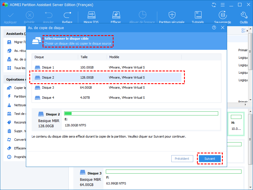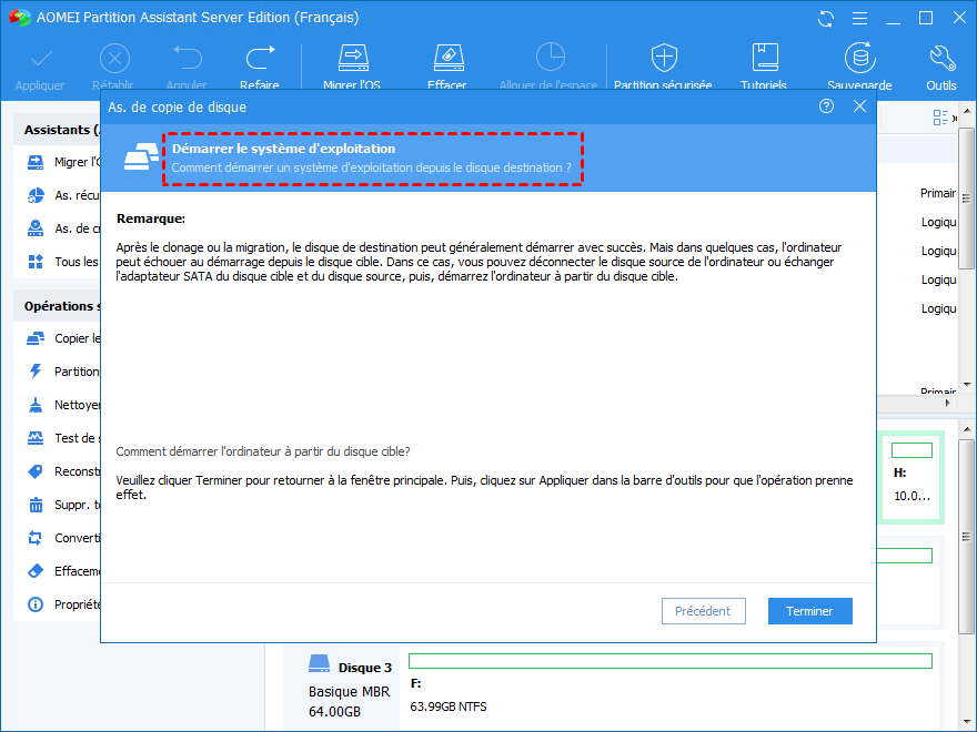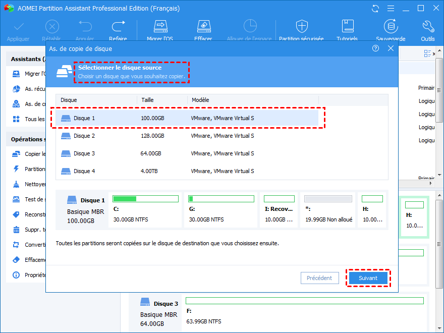 AOMEI Partition Assistant possède une interface conviviale, facile à utiliser pour les novices et les experts en informatique. En outre, l'équipe de développement se consacre à la simplification de l'étape de clonage, ce qui permet de réaliser l'ensemble du processus de clonage en quelques clics. Ce logiciel copie toutes les partitions cachées ou non cachées sur le disque de destination pour assurer un démarrage réussi.