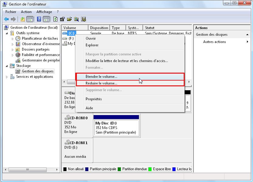 Nous verrons comment déplacer le disque D et étendre le disque C avec l'espace non alloué comme exemple.