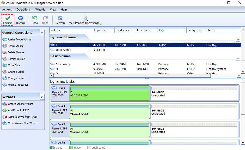 3. Vous pouvez maintenant prévisualiser le volume RAID a été étendu. Cliquez sur Commit pour l'exécuter.