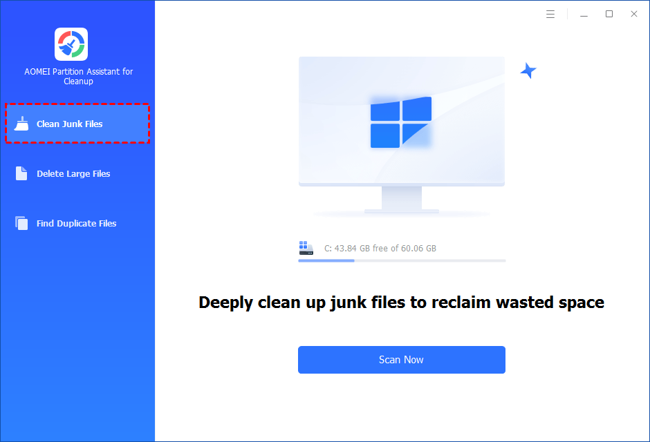 Where to find such a registry cleaning program that fulfills all the features mentioned above? Just right here, we recommend AOMEI Partition Assistant for Cleanup, the best free PC registry cleaner. It is freely available for all editions of Windows 11/10/8/7 and Servers. It’s a wonderful tool with a range of features and an intuitive user interface that makes it easy for everyone, especially for those computer novices to clean up computers. This is a professional and powerful disk cleanup tool that scans and deletes all duplicate and junk files from the system, including registry files, temporary files, Recycle Bin files, etc.