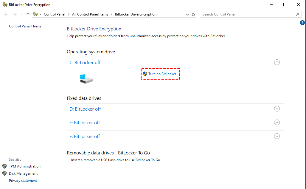 After the operation is finished, you can enable BitLocker encryption manually again.